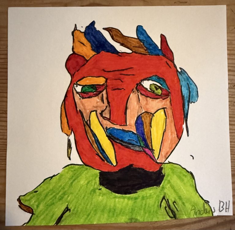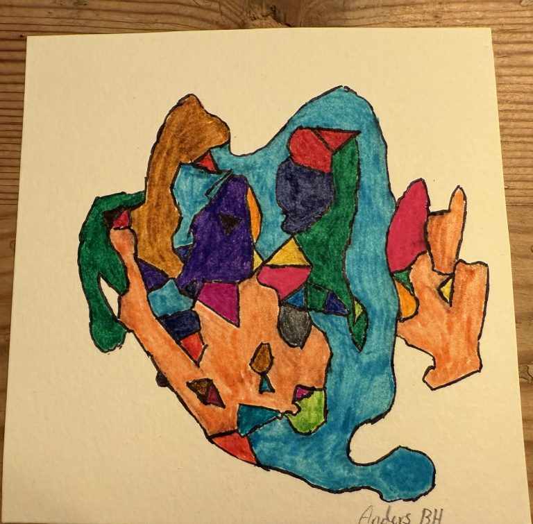 Tilgjengelig fra:187,5kr + 40kr frakt Det blå feltet midt i komposisjonen fungerer som tårer som renner nedover ansiktets konturer, mens de omkringliggende formene fanger intensiteten og kaoset i følelsene når man gråter.